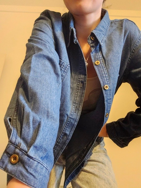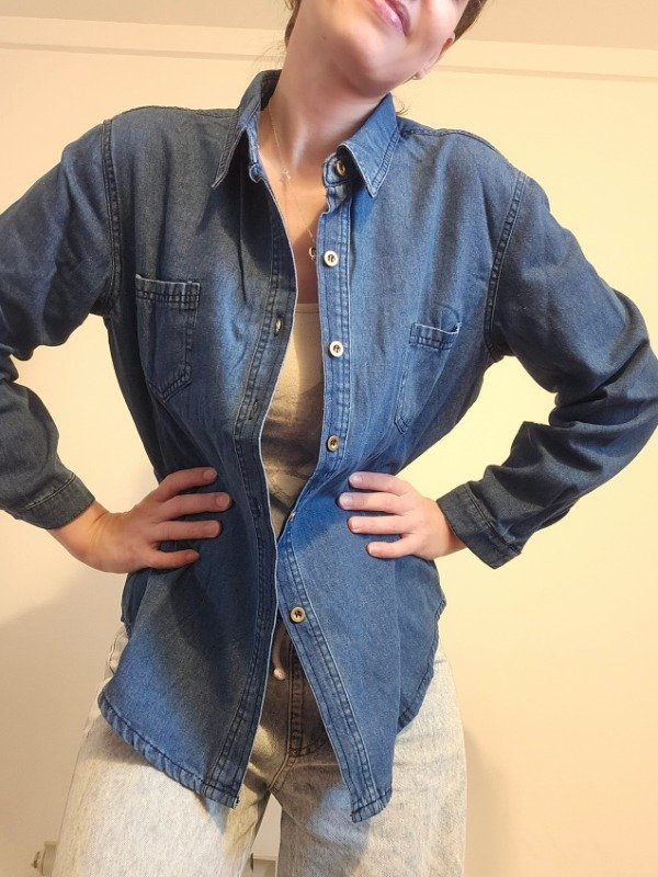 Camisa oveesized fabricada en jean con botones al frente y en los puños.